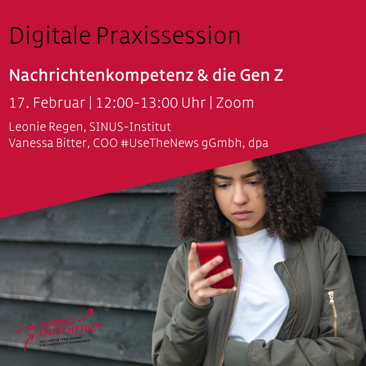 Mit den Gästen Leonie Regen (SINUS-Institut) und Vanessa Bitter (#usethenews, dpa) wollen wir gemeinsam mit Ihnen unter anderem über folgende Fragen diskutieren: